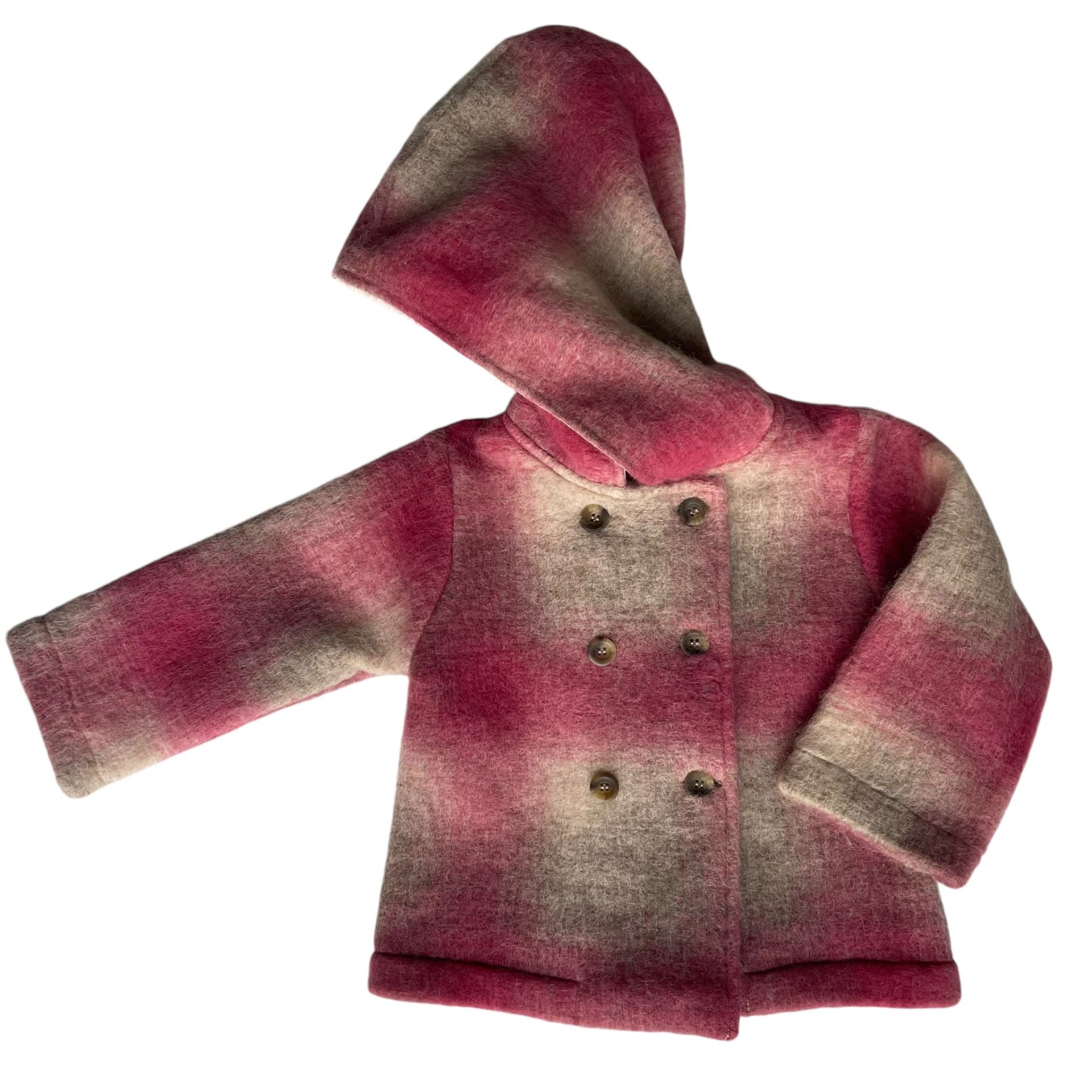 Giacchina doppiopetto in lana cotta con cappuccio sfoderata